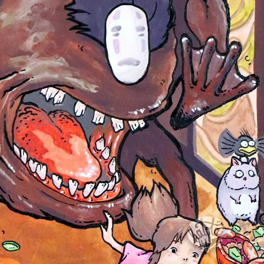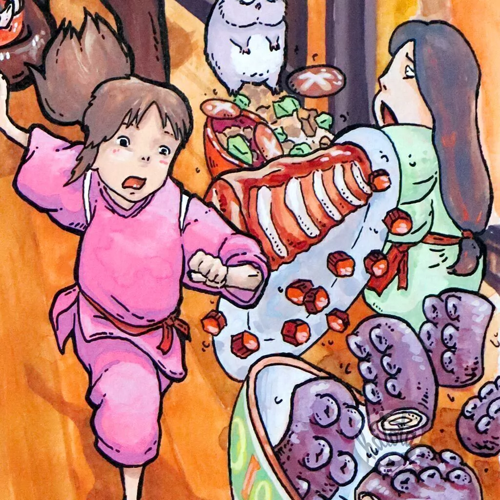 Print de uma pintura que eu fiz do filme A Viagem de Chihiro.